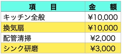 シンク周り、ガスコンロ、キッチン壁面、レンジフード外側(内側は対象外です。)